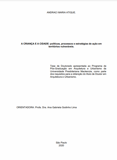 A criança e a cidade : políticas, processos e estratégicas de ação em territórios vulneráveis - Atique Andraci Maria